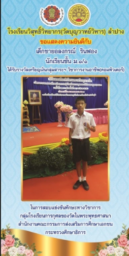 เหรียญเงิน การแข่งขันทักษะทางวิชาการ ระดับ ม.ต้น วิชาคอมพิวเตอร์